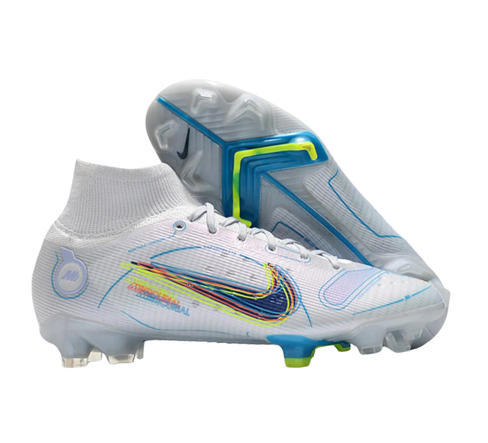 Nike Mercurial Superfly 8 Elite FG Firm Ground Soccer Cleats - White/Blue/Yellow